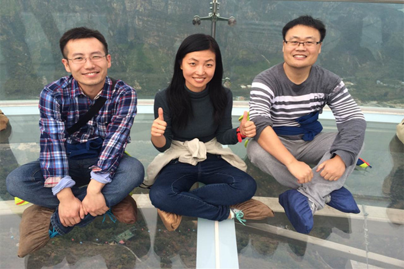教师队伍团结有爱的精神与风姿。最终大部分老师成功登顶,站上玻璃观景台,满山风景尽收眼底。