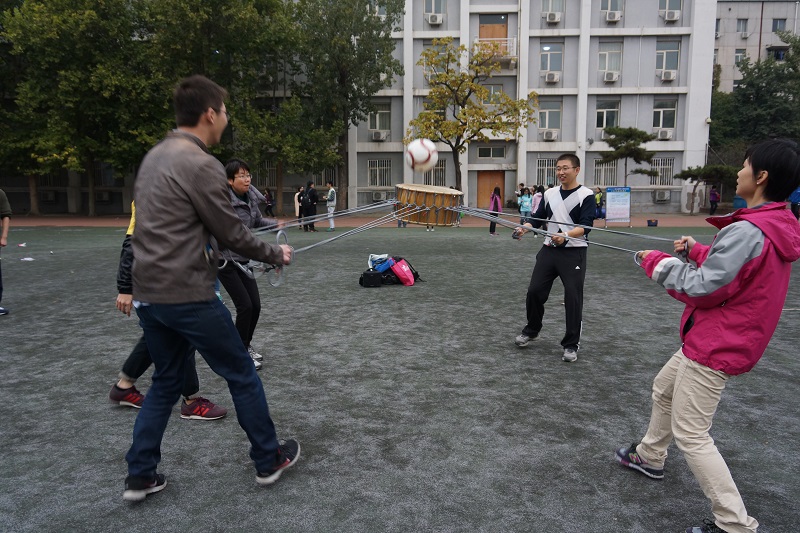 10月21日,无码流出 教师代表队七十余人参加了学校组织的趣味运动会。参赛选手不畏深秋雨后的寒冷,热情参与了“沙包攻垒”、“集体跳绳”、“毛毛虫竞速”、“三砖渡河”、“齐心颠球”等项目,并自发组织踢毽子等活动。趣味运动会为广大教师提供了强身健体、沟通交流的机会,为课余生活增添了无线欢笑和乐趣,同时也巩固了无码流出 的集体凝聚力和团结协作精神。