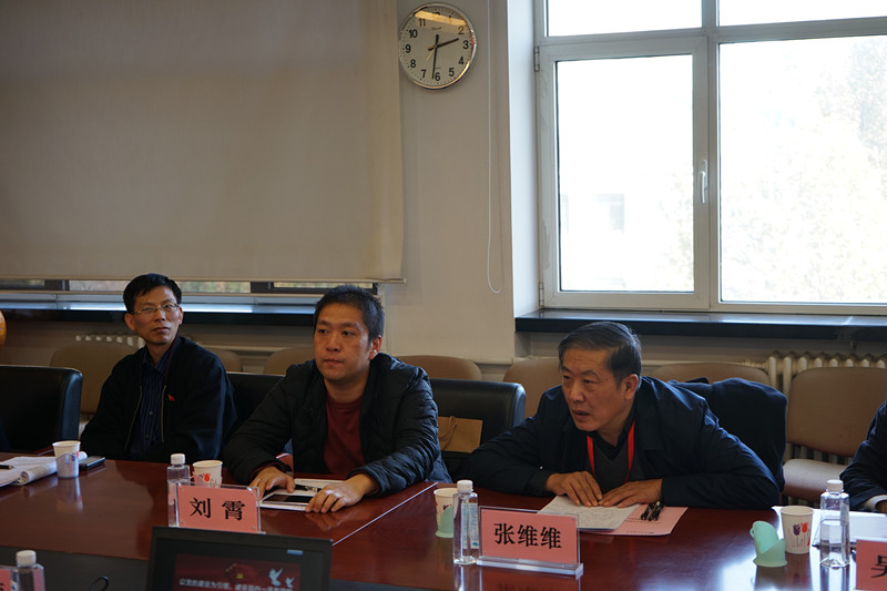 上午,我院部分师生代表参加了专家组分组座谈,其中王勇老师和李艳春老师参加党支部书记和党员座谈会、于小婷同学参加宣教组座谈会。下午,检查组整体组组长、北京航空航天大学正局级干部张维维、北京林业大学原党委书记吴斌和市教委高教处副处长刘霄一行三人到我院检查指导工作。学院领导班子、党委委员、教授代表欧阳爱平、教师党支部书记代表曹正进和学生党支部书记代表李博文13人参加汇报与座谈。
