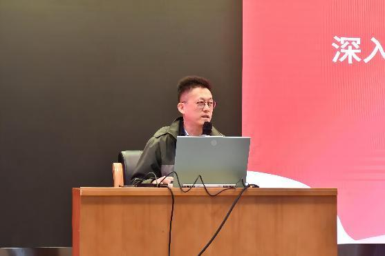 马克思主义学院葛学彬副教授为同学们讲授《深入学习领会习近平文化思想》的专题报告。他谈到,习近平文化思想是新时代党领导文化建设实践经验的理论总结,是习近平新时代中国特色社会主义思想的重要组成部分。他围绕把握好与习近平文化思想相关的若干问题、全面领会习近平文化思想的丰富内涵两个方面进行深入阐述,希望同学们全面系统学、及时跟进学、结合实际学,并在深入学习领会中创造性地加以实践落实。
