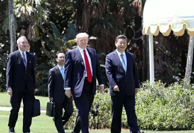 会晤后,习近平同特朗普到秀丽宜人的海湖庄园中散步,在轻松友好的气氛中继续就两国友好合作进行讨论。