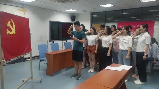 最后,在何风强同志的带领下,新党员面向党旗,庄严宣誓,与会党员也重温了入党誓言。