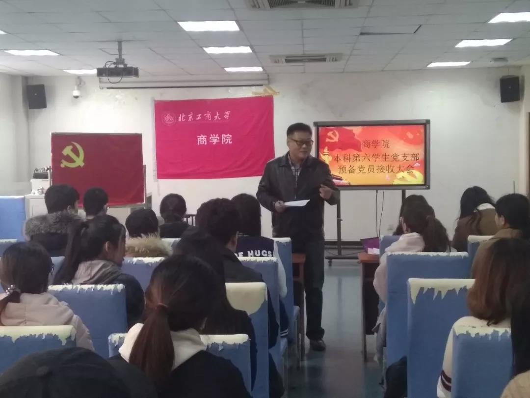 本科第六党支部在科研楼104召开预备党员接收大会,会议由第六党支部书记樊江涛老师主持,支委寇明雯老师和岳志余同学以及第六学生党支部30名学生预备党员参与了会议。