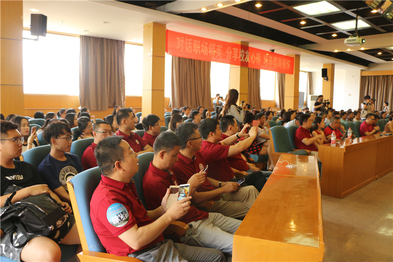 本次活动以“对话精英”校友职场心得分享会作为开场,汤胜军、张茜、黄定旺等多位毕业二十年的校友分享了自己在就业创业过程中的心路历程,并对学校今后的发展建言献策。他们对母校的深情不仅蕴含着对校园岁月的缅怀,更有对未来的展望,他们希望通过自己的经验分享以及学弟学妹们的努力,商科学子的未来发展会更好。有160多位校友和在校生聆听了经验分享。