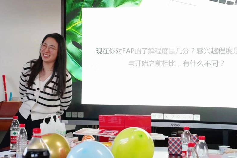 贾梦诗通过心理学卡牌游戏“心灵快照”开场,介绍了HR体系中的小众岗位—EAP(员工心理支持)。她介绍了EAP的理念、职责和工作模式,分享了在企业实际场景中可能遇到的EAP案例和目前的职场心理健康状况统计数据。