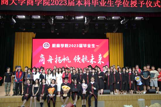 扶苏正冠师生情,商才踔厉新征程。在2023届本科毕业生学位授予仪式环节,学院学位委员会成员张春萍、毛新述、张倩、孙永波、张伟华、邓春平、彭红星、张晨宇、王勇及导师代表朱蓉共同为全体本科毕业生拨苏正冠并颁发学位证、毕业证。正冠拨穗,商舟扬帆,领航未来。