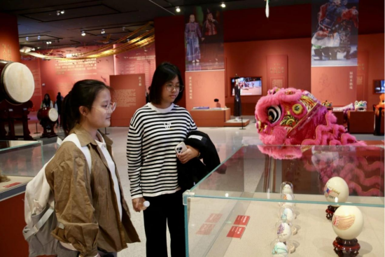 展馆内特别设置沉浸式体验环节。在木版年画工坊,学员们亲手拓印出盛唐飞天衣袂翩跹的轮廓,亲身在鲁班锁拼合中领悟榫卯结构“天衣无缝”的造物哲学。到了敦煌服饰展区,历时七年复原的369件霓裳以衣纹为史,让学员透过织锦经纬窥见丝路文明交融的壮阔图景。“当我们的指尖触碰到缂丝的金线时,仿佛与千年前的匠人产生了共鸣”,许多学员表示。