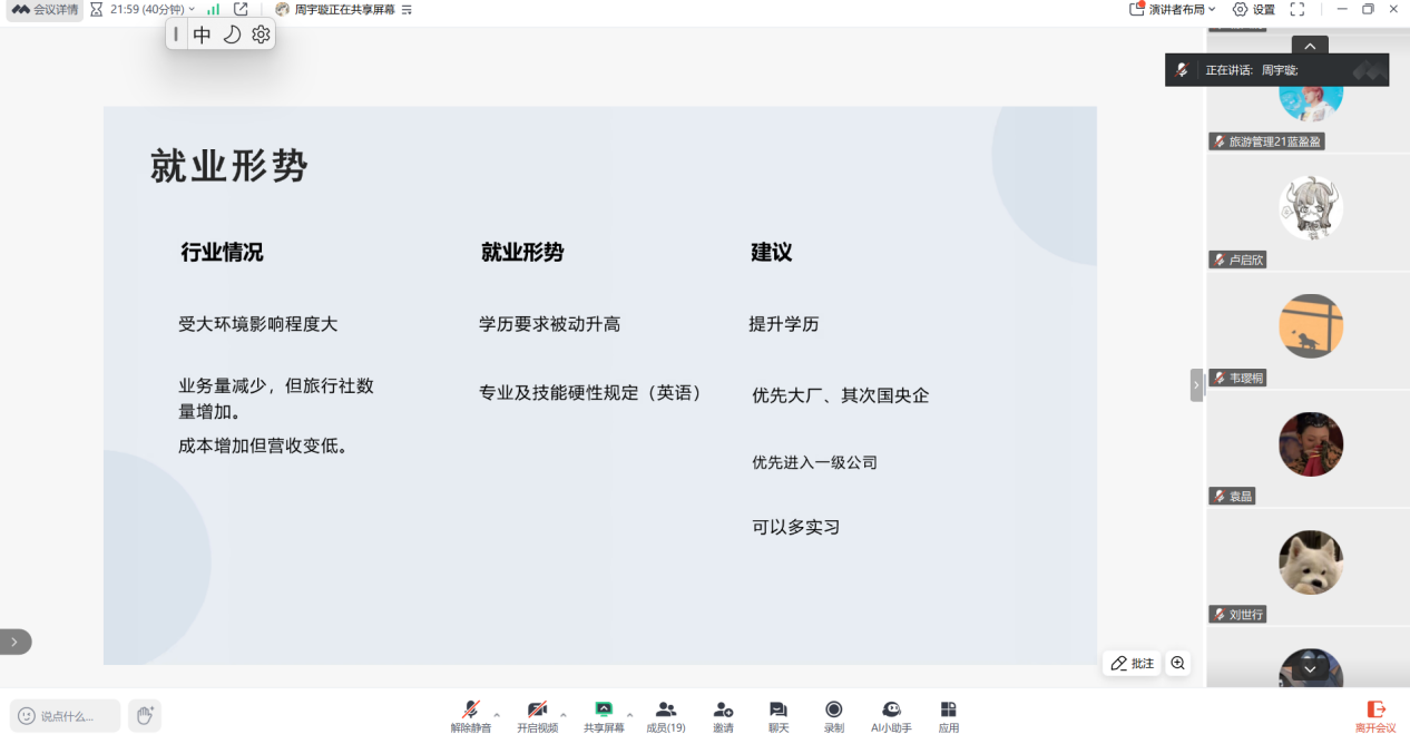 旅游管理专业20级校友周宇璇返校分享求职经验