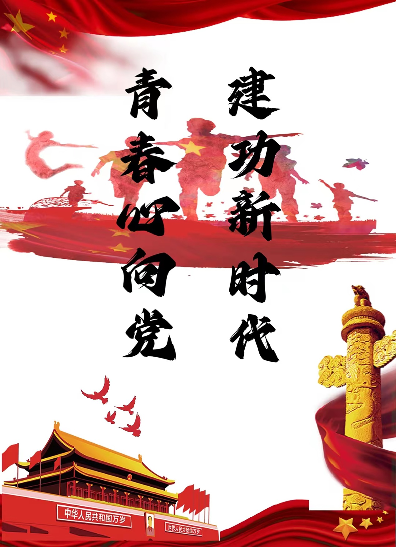 海报中的文字“青春不停步,永远跟党走”表明,实现中华民族伟大复兴的接力棒传到了我们手上,我们要践行党的二十大精神,自信自强、守正创新、砥砺奋发、勇毅前行!