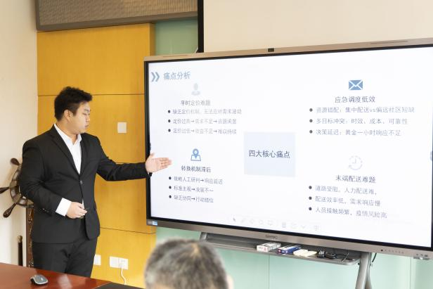 上午8:30比赛正式开始。本次比赛分设研究生赛道和本科生赛道,共10支研究生队伍、27支本科生队伍参加最后决赛。经过激烈角逐,研究生赛道决出一等奖2组,二等奖4组,三等奖4组;本科生赛道评选出一等奖4组,二等奖8组,三等奖15组。我校共5支队伍参加决赛答辩,其中发际线保卫队、链链看队分获研究生赛道、本科生赛道一等奖。