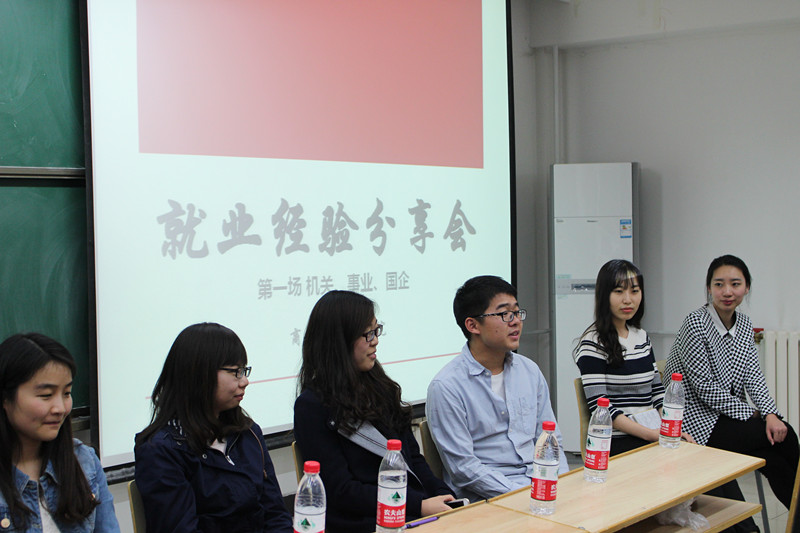 在两个多小时的交流中,先由参加国考、京考的同学分享笔试的准备,让低年级同学在时间和专业知识的准备上有了清晰的认识。在面试的环节,要关注经济、金融和时事以及英语的笔试和口译,做到未雨绸缪。其次,签约国企以及事业单位的同学为大家详细介绍了从投递简历到签约的整个经历,为低年级同学总结出许多有价值的经验。