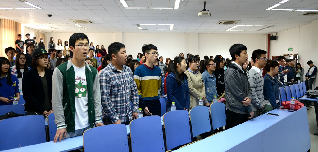几个重点部分的练习结束后,验收正式开始。清亮、干净的嗓音传递着商院学子单纯、真诚的赤子之心,演唱期间花样百出、节奏鲜明,带领现场进入至臻至纯的境地,不可不叹。