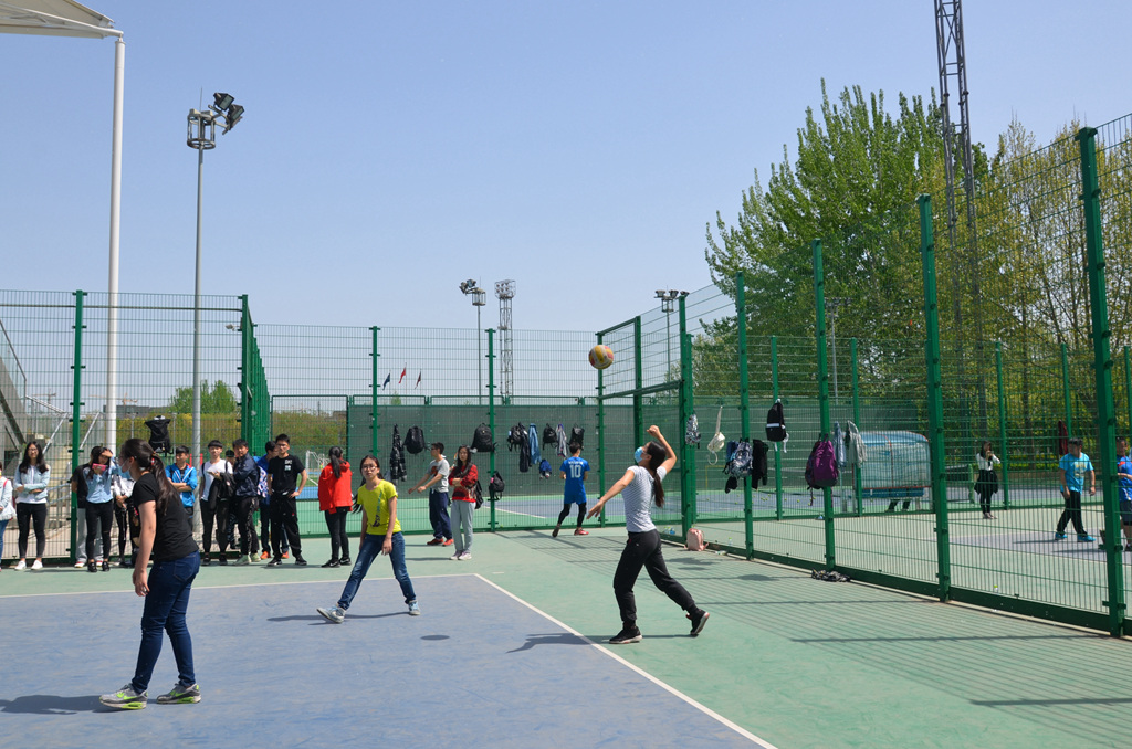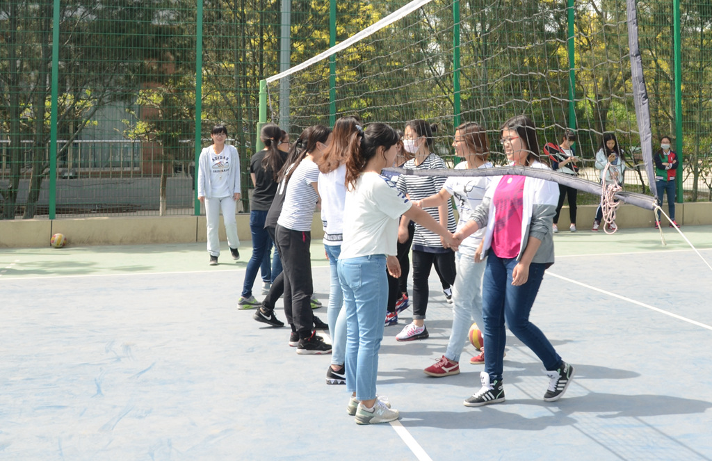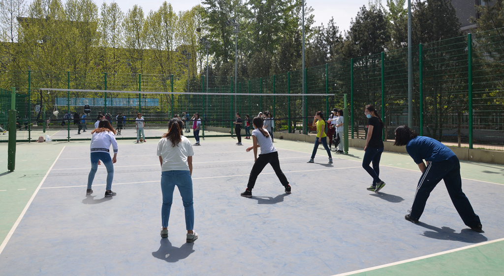 和材机学院在图书馆一侧的排球场展开了女排第三、四名的角逐。