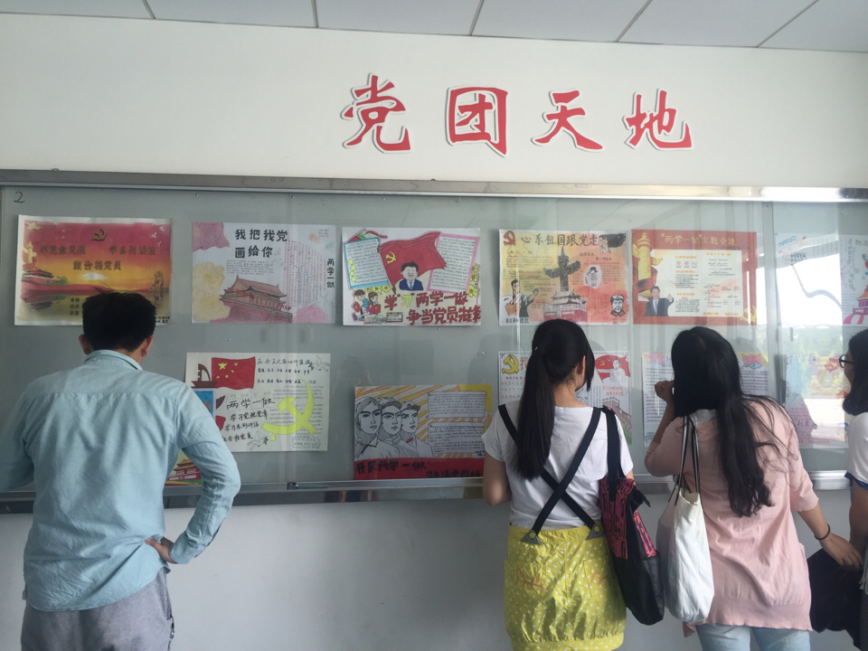 党团天地,“我把党画给你”手抄报大赛优秀作品正陈列展出,同学们安静欣赏低调而富有内涵的创作。