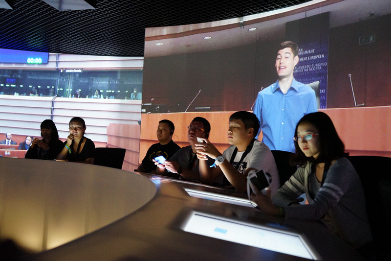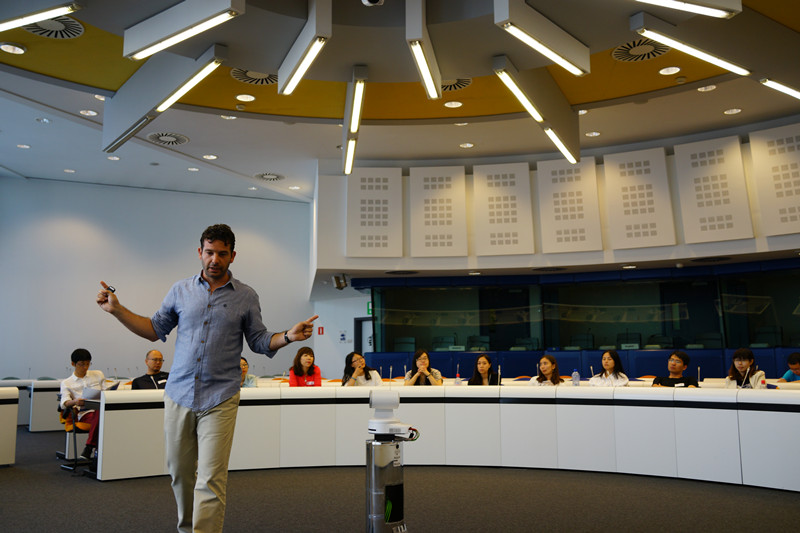 布鲁塞尔和日内瓦的行程则以国际机构的访问为主,同学们前往欧盟总部、联合国日内瓦办事处、国际电信联盟总部等参观学习,并聆听各机构高级官员发表的学术报告。学员们在这些国际机构受到了热情的招待,了解到各机构的管理架构、运作模式、所面临的挑战以及未来的发展,也在学习之余体验了各机构的特色项目。例如:同学们在欧盟总部的环形屏幕中模拟参加了欧盟会议;在联合国日内瓦办事处进入万国宫大会厅和理事厅感受国际会议的氛围等等。