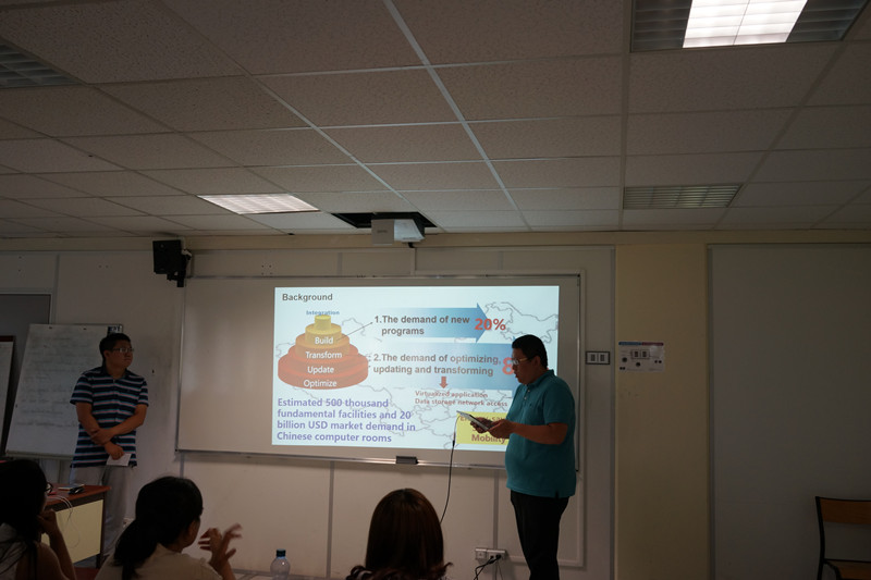 访学交流接近尾声,每个学员都需要参加最终的测试以获得结业证书。根据法方学校的要求,各学校以组为单位,选择合适的创业项目,并利用所学知识撰写和讲演商业策划案。期间,我院师生组成两个小组,分别选择了篮球文化学校项目和大型集成工业设备项目,精心准备策划案和讲演材料,受到评委的一致好评,并顺利获得结业证书。