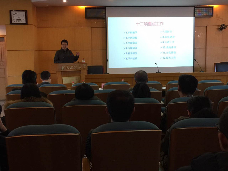 随后,王国顺院长对本学期的十二项重点工作进行了详细的总结:本科教学方面,已经完成7门课程的AOL图谱编制;专硕培养方面,MBA规模不断扩大;学风建设和学硕培养等其他方面也都取得了稳步的进展。王国顺院长还对本年度的考核和绩效发放等事宜进行了说明。最后,王院长向全院教师表达了新年祝愿,希望大家能更高质量地生活和工作,共同把学院建设推向前进。