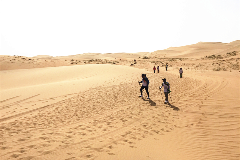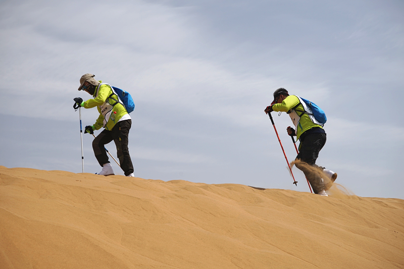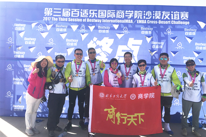 5月29日至30日,队员们轻负重徒步穿越50km沙漠,在地表47度高温的情况下,面对垂直高度达80米的重重沙丘,通力合作,不畏艰险,不怕苦、不怕累,不抛弃、不放弃,徒步13个半小时穿越了乌兰布和沙漠。我校代表队取名为“商行天下”,MBA师生在院长的带领下,斗志昂扬,奋力拼搏,在比赛中全队8名队员全部完赛,取得了团队总分排名18的优异成绩,我校代表队获得了赛事最高奖项胡杨奖。