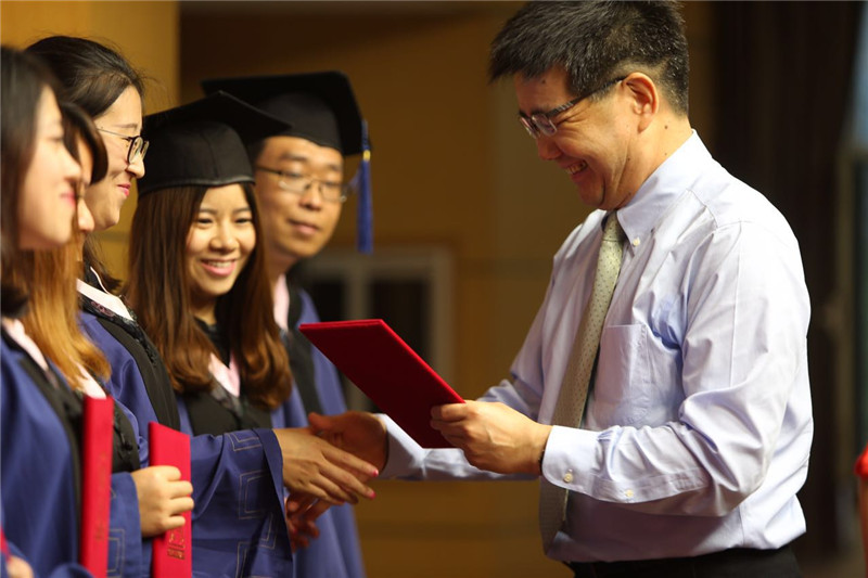国际交流与合作处处长刘影用英文讲话中表达了对首次毕业的12名IMBA留学生们的祝贺。研究生院副院长石松表达了对所有MBA毕业生的祝福和对MBA中心越来越好的祝愿。