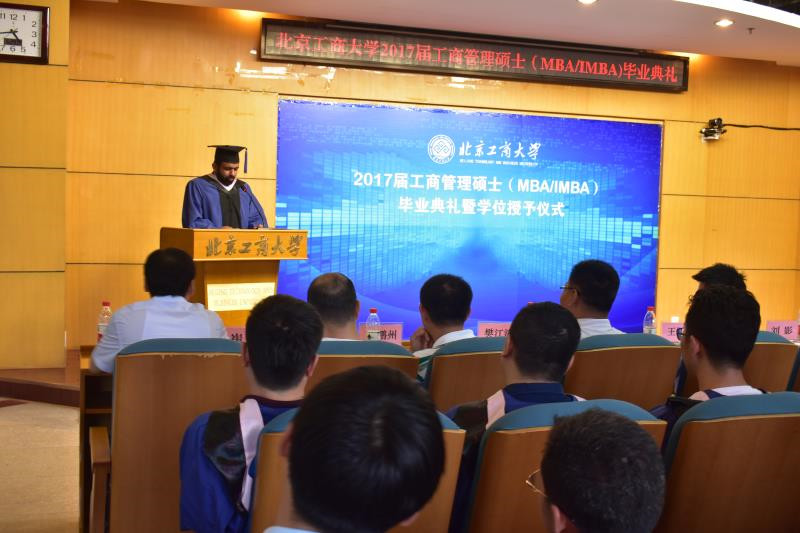 2015级秋季班班长屈晓春和2015级IMBA班的Shahzad Muhammad同学代表毕业生发言,表示感谢母校的培养和帮助,今后会更加努力地生活和工作。