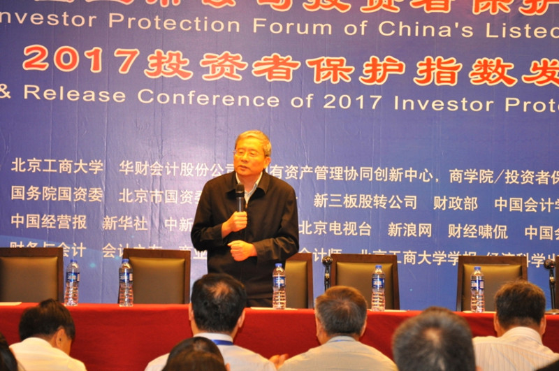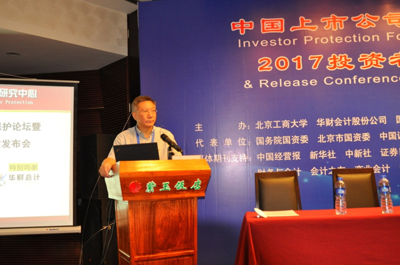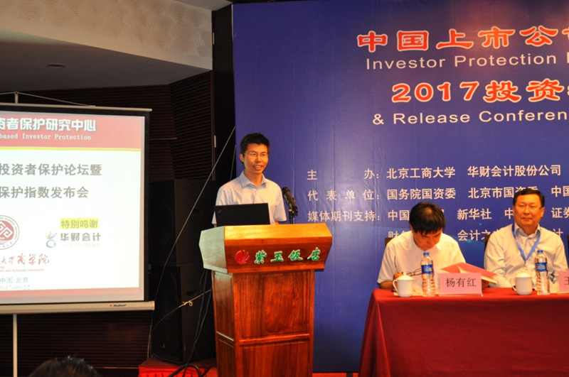 9月22日,我院召开中国上市公司投资者保护坛暨2017投资者保护指数发布会,连续第八次发布中国上市公司投资者保护指数,同时第二次发布新三板投资者保护指数。我校副校长谢志华,财政部会计司、企业司原司长刘玉廷,国家发改委司长宋承敏,中国保险资产管理业协会副秘书长陈国力出席发布会并做主题演讲。监管部门、投资机构、上市公司等相关单位,财经、新华社、中新社等在京媒体,会计研究等专业期刊,以及在京高校和科研机构的代表共140余人参加了发布会。发布会由杨有红教授主持,学院党委书记毛新述教授出席发布会并致辞。