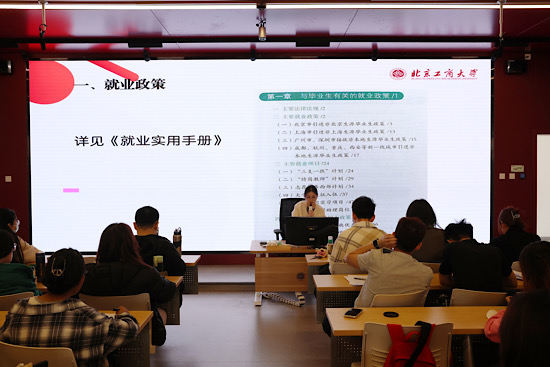 辅导员程钰简要介绍2024年最新国家就业政策,以及毕业去向登记与网上签约平台的操作系统,围绕学校《就业实用手册》讲解毕业有关的就业政策,提醒毕业生尽早完成信息录入,并针对就业签约、派遣中常见问题进行解答。