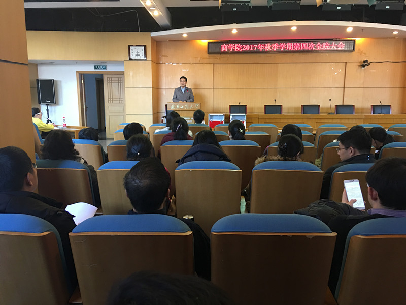 全体教师在综合楼三层报告厅召开2017年秋季学期第四次全院大会,会议由院长王国顺主持。