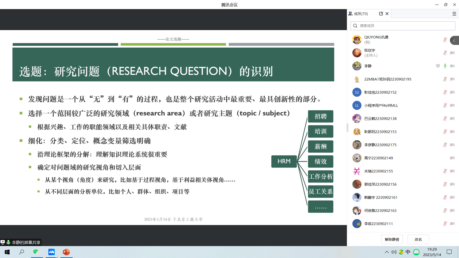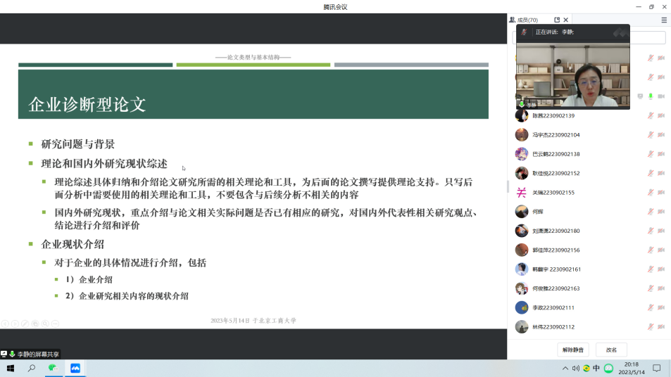 为指导无码流出 MBA专业学生如何明晰选题、规范撰写学位论文,2023年5月14日19:00,无码流出 MBA教育中心举办《学位论文选题与写作规范》讲座,邀请北京师范大学经济与工商管理学院、MBA教育中心李静副主任为同学们指导答疑。讲座由工商管理系仇勇副主任主持,无码流出 MBA中心执行主任何辉以及70余名MBA研究生参加。