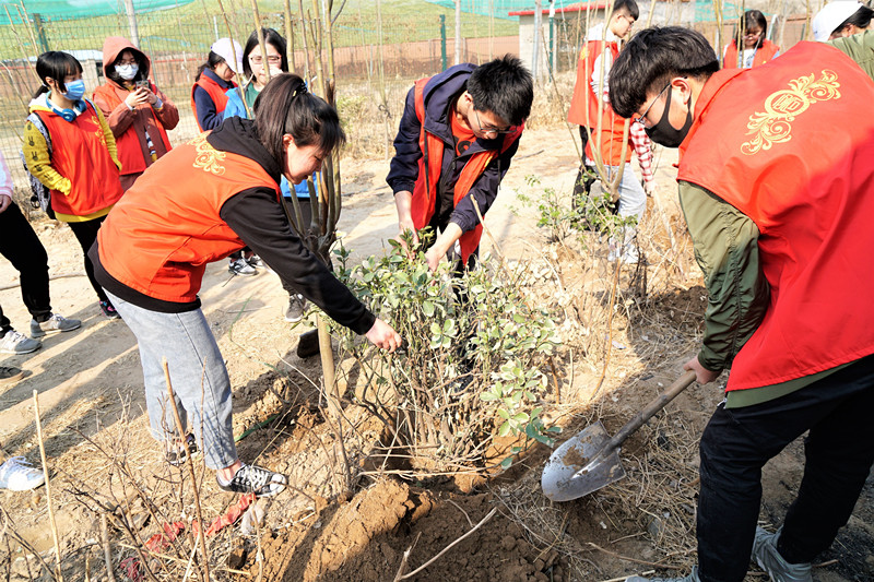 志愿者们来到拱辰街道的梨村开展义务植树活动。同学们用自己汗水和爱心将一棵棵绿色的树苗扎根于土地,一起扶苗培土、拎桶浇水,同学们不时地交流着加强生态保护、坚持绿色发展的观看。他们个个洋溢着幸福的笑容,因为这是属于商院学子的小树苗,更是发扬中华民族爱树植树护树好传统,要践行绿水青山就是金山银山的理念,持之以恒开展义务植树,共建美丽家园。