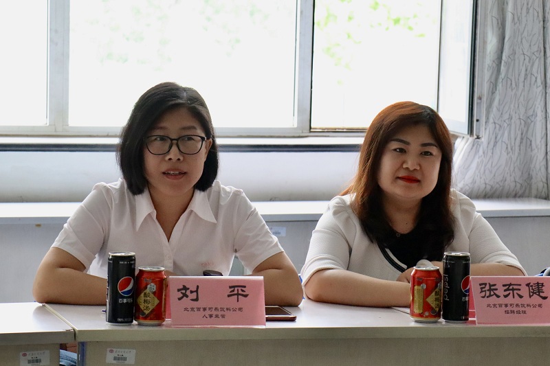 随后北京百事可乐饮料公司的人事主管刘平与招聘经理张东健向同学们分享了面试的一些趣事,并告诉同学们面试过程中更看重的是被面试者的态度,本科生与研究生在起步上略有不同,但在进入公司后要想走得更远还要凭借自身的能力。