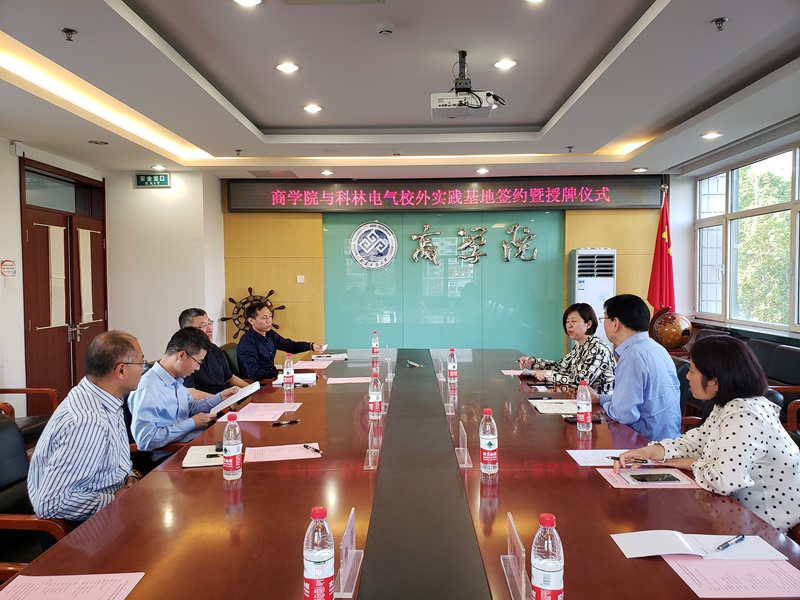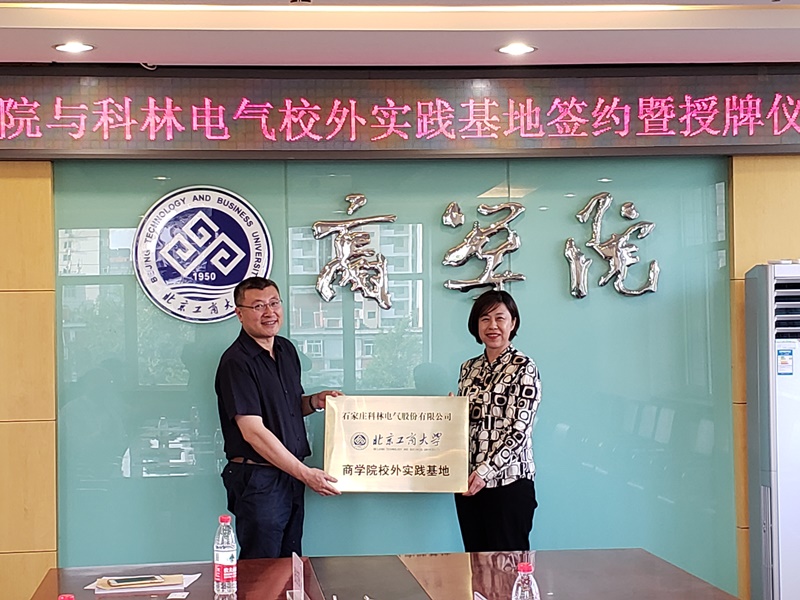 孙永波副院长代表学院为科林电气授牌,科林电气器董事、副总裁董彩宏女士代表企业接牌,并由双方领导共同签署了合作协议