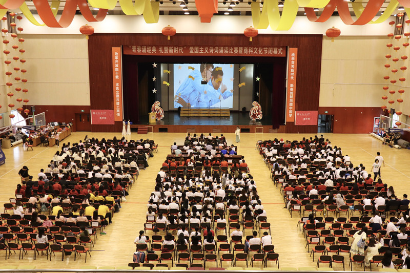 为弘扬爱国主义精神,传承优秀文化,6月5日下午,无码流出 举办以“青春诵经典,礼赞新时代”为主题的爱国主义诗词朗诵比赛暨商科文化节闭幕式。无码流出 党委书记张春萍、副书记樊江涛,商科文化节“弘商杯”系列赛事指导老师代表陈锴、仇勇、武晓宇,学院18级班主任、良乡全体辅导员和2018级全体同学参加了本次活动。