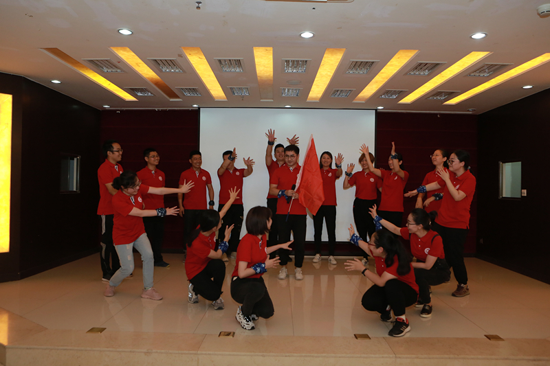 在正式拓展训练环节,同学们被分成了八支队伍,在教练们的带领下进行了推选队长、起队名、画队旗、编口号,站队姿的活动。在展示环节,“哪吒队”、“至尊宝宝队”、“王者队”、“阳光队”、“我们都队”、“西红柿炒鸡蛋队”、“红星队”等队伍的创意展示,赢得了台下的掌声。