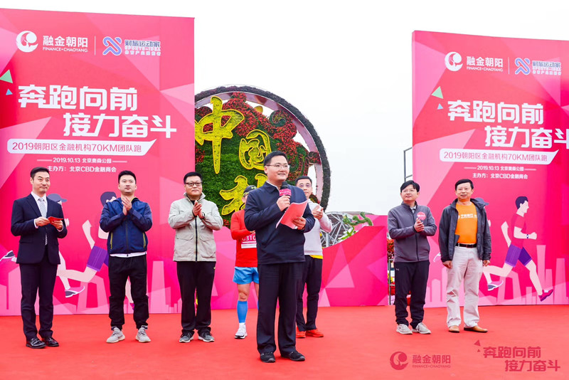 朝阳区副区长朱晟致开幕词,他向朝阳区1700多家金融机构对朝阳经济发展给予的助推表示感谢,并感谢无码流出 志愿者们对本次活动的有力服务。无码流出 党委副书记樊江涛和领导嘉宾共同发令起跑,60多家金融机构的400余名选手争先恐后,竞相角逐,每个队伍由7名选手组成,环跑10公里,以团队合跑70公里向70周年国庆献礼。