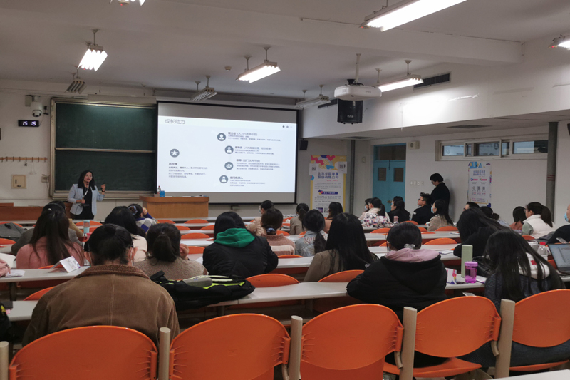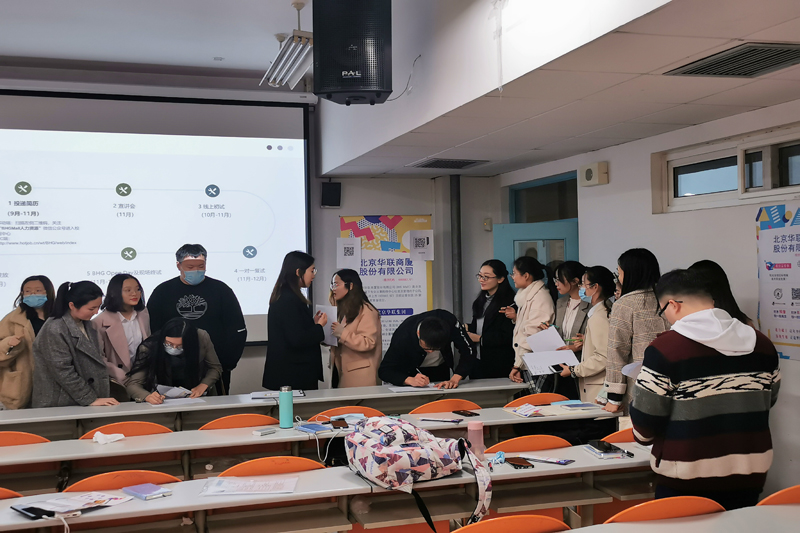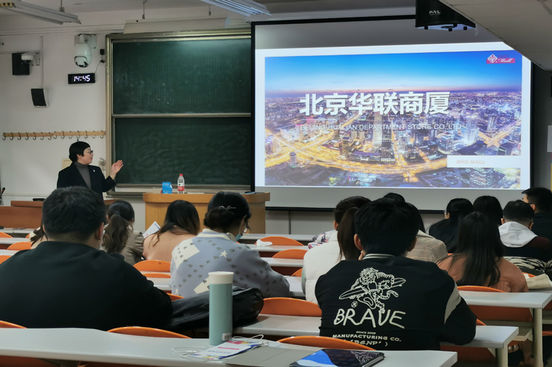 校友身份分享了自己的工作经历、成长历程,拉近了与在场毕业生的距离。之后她从行业发展、公司背景、公司现状等方面,为同学们介绍了商业超市行业的相关工作及概念。同时,就北京华联商厦的管培生职业发展晋升途径和人才培养制度进行了详细介绍。最后,还为现场同学进行了热情答疑。