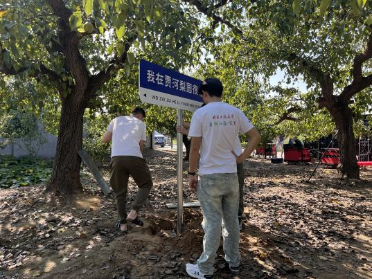 授牌仪式后,学院领导实地走访梨园并与村干部、村民交谈了解产业发展、乡村建设、产品销路、文化活动等情况,对接下来的合作形式达成了初步意向。在随实践团成员劳动的过程中,学院领导对同学们的辛勤劳动表示肯定,并与实践团成员合影留念。未来,学院将继续深化社会实践教育创新,充实实践基地的内容及资源,为更多学子提供有益的社会实践活动,并与贾河村建立起更加密切的合作关系,共同为助力京郊农村发展贡献力量。