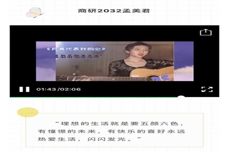 举办了“用Vlog记录假期生活,分享假期趣事”的活动,本次活动采用当下流行的Vlog拍摄方式,征集商院学子的Vlog视频,鼓励同学们发现生活的点滴美好与善意,传递温暖与正能量。共有二十位同学参加了此次“Vlog”征集大赛。他们中,有实习出差记录旅途的“差旅党”;有喜欢弹唱,歌喉灵动的小歌手;有富有思想和创意的情景剧演员;更不乏喜欢记录且乐于分享日常的生活家……按下短视频的播放键,便能结识一位位在平凡生活中,憧憬未来,热爱生活的同学。他们和我们每个人一样,在忙忙碌碌的时光里,探索着生活中的小乐趣。他们让我们意识到,每个人都有自己前进的方向,不论明天会面对什么,不卑不亢,亦不彷徨,把平凡的日子打磨出光亮。