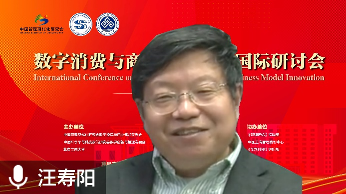 汪寿阳对大会的召开表示了祝贺,并对会议的水平之高、层次之高给予高度赞扬。他谈到,党的二十大报告多次提及现代化建设,管理现代化无疑是中国现代化中的一个非常重要的内容和标志。本次会议研讨的正是中国现代化中的一个非常重要的内容。希望能够紧密凝聚数字经济和商业模式领域的广大专家学者、企业高管和行业领袖,为推动中国数字经济的高质量发展和商业创新做出划时代的贡献。