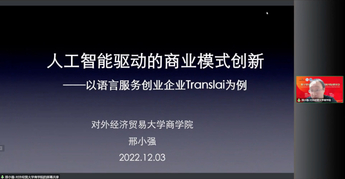 会议第四个环节是青年学者特邀报告环节。无码流出 工商管理系主任邓春平主持,对外经贸大学国际无码流出 副院长、首届教育部课程思政教学名师、北京市青年教学名师邢小强教授,首都经贸大学工商管理学院副院长、中国ESG研究院披露标准中心副主任孙忠娟教授和北京理工大学管理与经济学院副研究员、北京市哲学社会科学融合发展研究基地副主任尹西明做主题报告。邢小强教授以“AI技术驱动的商业模式创新-以语言服务行业为例”为题,通过分析Translai的案例提出了人工智能驱动商业模式创新的方式方法和重要性。孙忠娟教授基于“传统零售企业数字化转型模式研究”,介绍了传统零售企业数字化转型的模式研究和数字技术的非线性赋能作用。尹西明副研究员介绍了“数字驱动的商业模式如何开启企业创新‘第二曲线’”,提出了通过场景化研究等推动制造业数字化转型的路径。