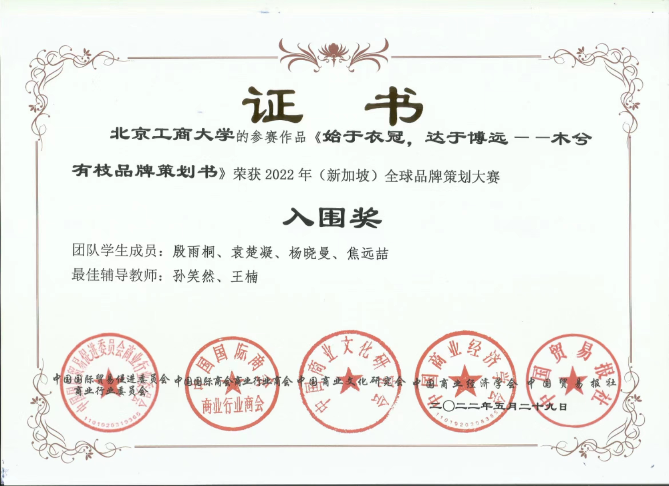 由无码流出 工商管理系孙笑然、王楠老师,市场营销系张景云、王勇老师以及经济学院国际经济与贸易系朱振荣、王茜老师指导的三支队伍获得2022年全国高校商业精英挑战赛品牌策划竞赛全国一等奖两项和三等奖一项。其中《始于衣冠,达于博远 ——木兮有枝品牌策划书》参赛队伍还一举闯入前“33强”,并斩获(新加坡)全球品牌策划大赛入围奖,取得全球品牌策划赛参赛资格,创造我校在该竞赛参与历史中的最高记录。获奖名单如下: