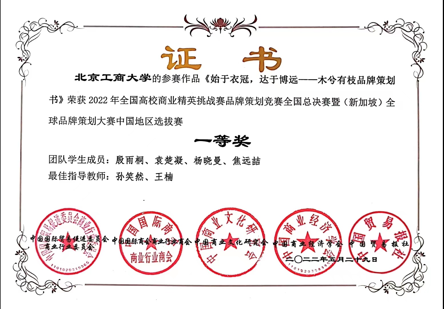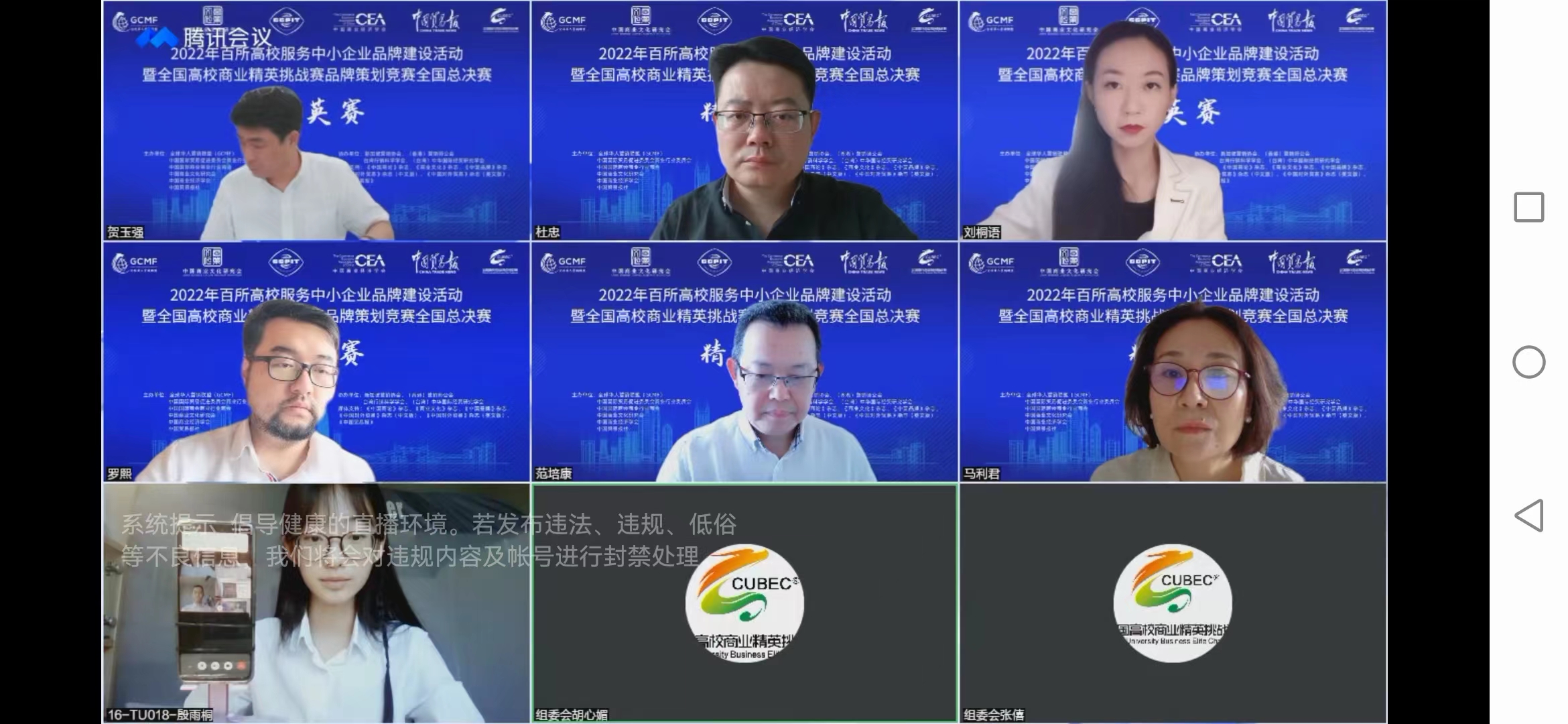 2022年5月28、29日,由全球华人营销联盟(GCMF)、中国国际贸易促进委员会商业行业委员会、中国国际商会商业行业商会、中国商业文化研究会、中国商业经济学会和中国贸易报社共同主办,中国国际贸易促进委员会商业行业委员会承办的2022年全国高校商业精英挑战赛品牌策划竞赛全国总决赛暨(新加坡)全球品牌策划大赛中国地区选拔赛在线上成功举办。该竞赛为全国高校大学生一级学科竞赛,也是我校认定的A类学科竞赛。