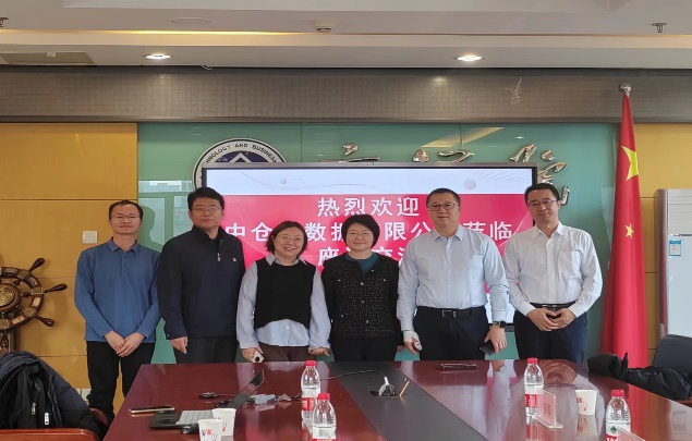 12月4日上午,中仓登数据服务有限公司总裁马令海、副总裁李树轩、人力负责人叶丽娜一行3人来我院座谈交流。无码流出 党委书记付仕伦、院长何玉润、物流管理系副主任张汉坤参加了本次座谈。