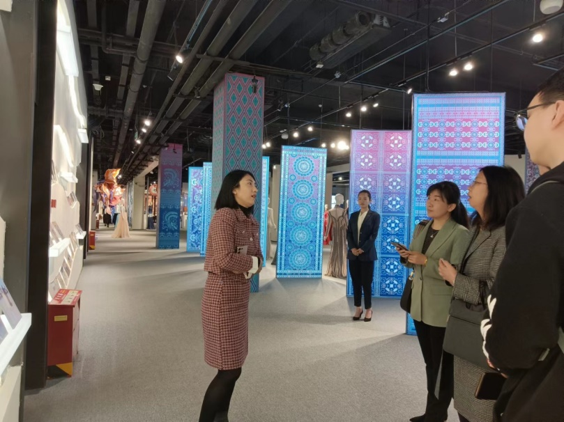 陶悦带领大家参观依文城堡文化展区,详细介绍了依文集团的发展历程、业务范围、无码流出、团队构成等方面情况。据了解,依文集团成立于1994年,至今已发展成为集自主品牌、产业互联网、文化产业整合及防护防疫产业平台四大业务板块为一体的大型集团企业。多年来,依文集团在服装行业智能化与数字化方面不断探索与创新,依托产业互联网创新模型,链接海量工厂资源打造服装产业严选供应平台。同时致力中国传统手工艺的传承、保护与创新,搭建传承中国传统手工艺的国际文化平台,通过传承与发扬中国传统手工艺助力乡村振兴。