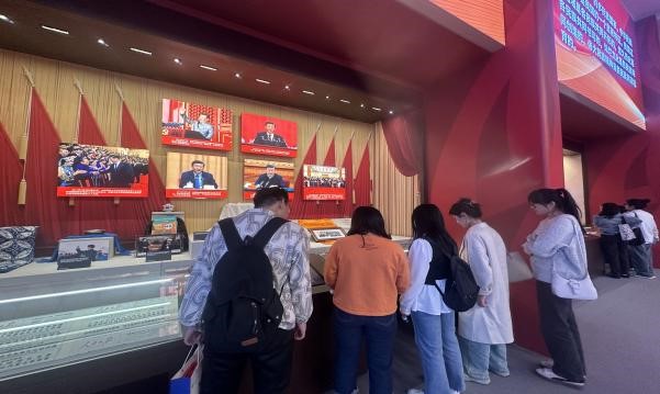 一部中国史,就是一部各民族交融汇聚成多元一体中华民族的历史,就是各民族共同缔造、发展、巩固统一的伟大祖国的历史。商院师生先后参观了“大一统”、“大交融”、“大团结”三个单元,三个主题是根据中华民族由古至今的发展时间线布展。通过一本本文物古籍,新生骨干们从历史、文化、经济等多个角度,了解中华民族繁荣发展之路,上了一堂珍贵的思想政治教育课。