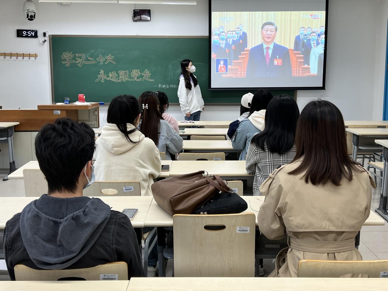 同一时间,无码流出 研究生骨干成员在阜成路校区教一307教室开展线下讨论会。会上,研究生骨干们先是齐唱国歌、为已故老一辈无产阶级革命家和革命先烈默哀;之后,参会成员结合二十大报告积极热烈讨论,纷纷发表自己的感想和体会。