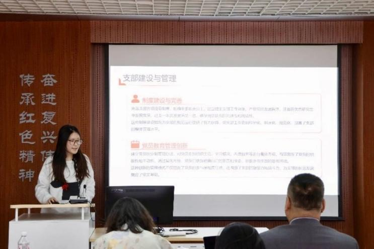 各学生党支部围绕着四个方面进行述职汇报:⼀是带头严守政治纪律和政治规矩,维护党的团结统⼀;⼆是带头增强党性、严守纪律、砥砺作风;三是带头在遵规守纪、清正廉洁前提下勇于担责、敢于创新;四是带头履行全面从严治党政治责任。学生党支部书记汇报结束后,与会领导老师按照“⼀述⼀评”的方式对各支部工作进行点评。