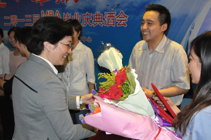 在庆典活动上,毕业生向母校赠送了纪念品,学院也向毕业生回赠了纪念品。校领导孙尧东、谢志华、张耘为2013届MBA、MPACC优秀毕业论文获奖者颁发了证书和奖品。