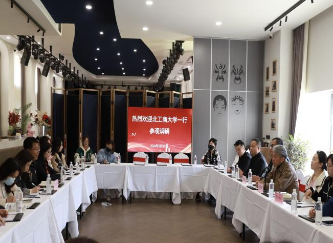 参观结束后,双方进行座谈交流。付仕伦就调研交流的目的作简要说明,并详细介绍了学院专业师资、人才培养、社会服务等建设发展情况。他表示希望在科技文化创业园的大力支持下,积极探索大数据驱动背景下交叉学科与人才培养体系的融合,提升学生的社会认知和国际视野,使教育适应社会发展,培养商界卓越人才,服务首都高质量发展。要通过第二课堂切实推动科创项目、创业项目最大程度落地孵化,推动市场价值。要强化院企业合作,通过此次调研交流,拓宽合作思路,充分发挥各自优势,积极对接企业的用人需求和学生的发展需要,实现人才互通、资源互补。