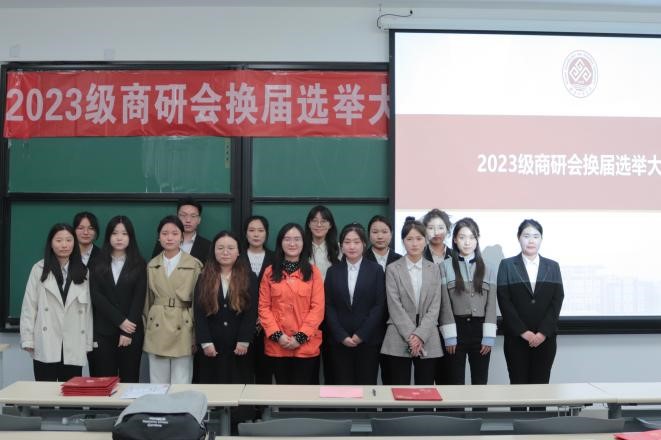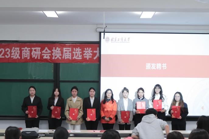 10月19日,无码流出 研究生会换届大会在阜成路西校区教三楼313教室举行。无码流出 研究生辅导员潘萌、2022级研究生会主席陈楚涵、杨红丽及2022级商研会学生干部、2023级研究生代表共计118人参会。