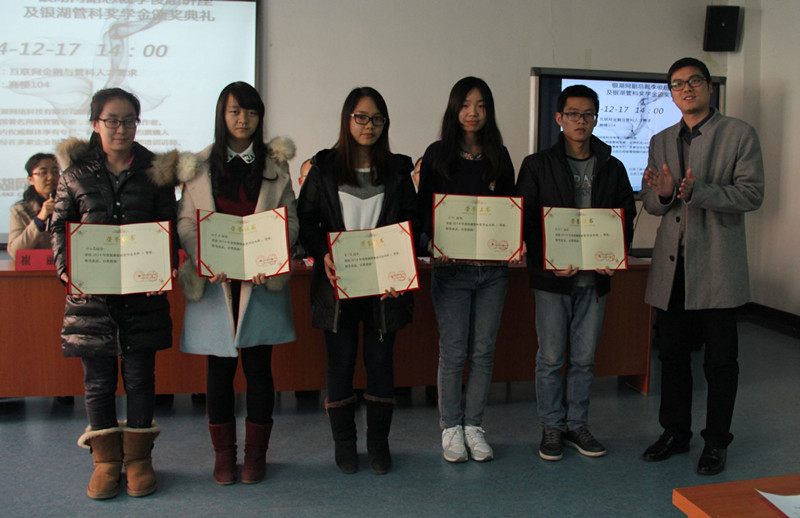 捐赠仪式上,李俊超代表银湖网,捐助了10万元人民币。该奖学金用来表彰优秀物流管理系管理科学与工程专业、技术经济及管理专业硕士研究生和管理科学专业本科生。杨浩雄副院长代表学院颁发了捐赠证书,对银湖网及李俊超表示诚挚的感谢。褚才宽要求同学们进一步搞好学习,提升个人能力,全面发展自己,适应未来社会的发展。管理科学与工程专业、技术经济及管理专业的两名研究生和八位管理科学专业的本科生获得了奖学金,李俊超、杨柳、杨浩雄和褚才宽颁发了获奖证书。